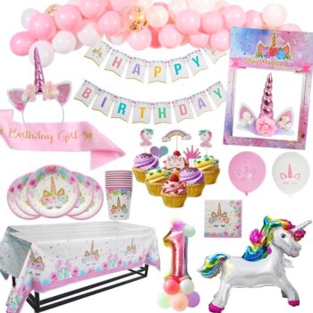 Unicorn Party Supplies Disposable Plates Tablecloth Cup Banner Cake Topper Kids First Birthday Decor Baby Shower Decorations