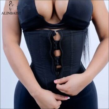 Women Latex Waist Trainer Body Shaper Corsets with Zipper Cincher Corset Top Slimming Belt Black Shapers Shapewear Plus Size